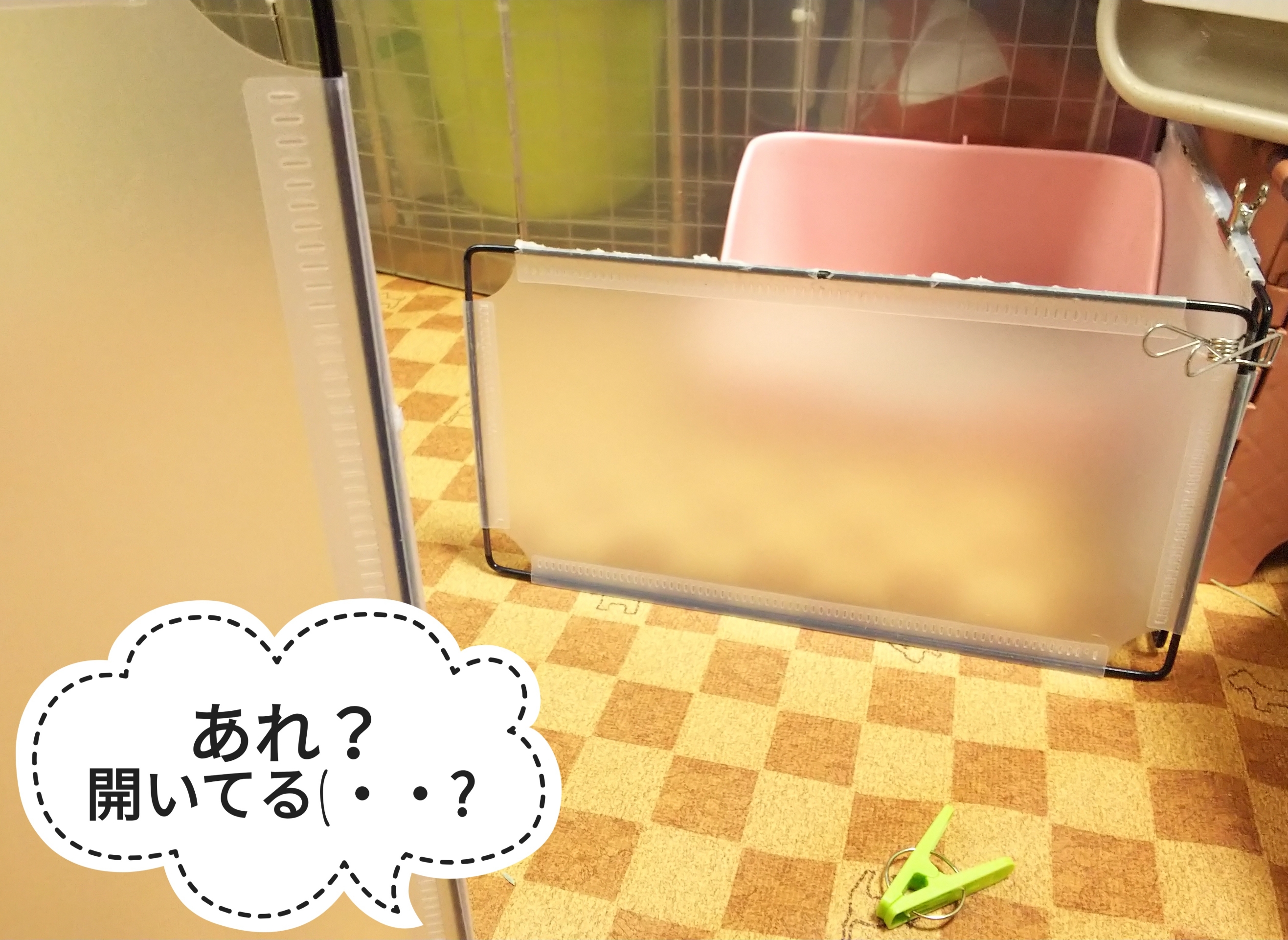しかし、柵が洗濯ばさみで留まってなかったことによく気づいたなぁと感心します。