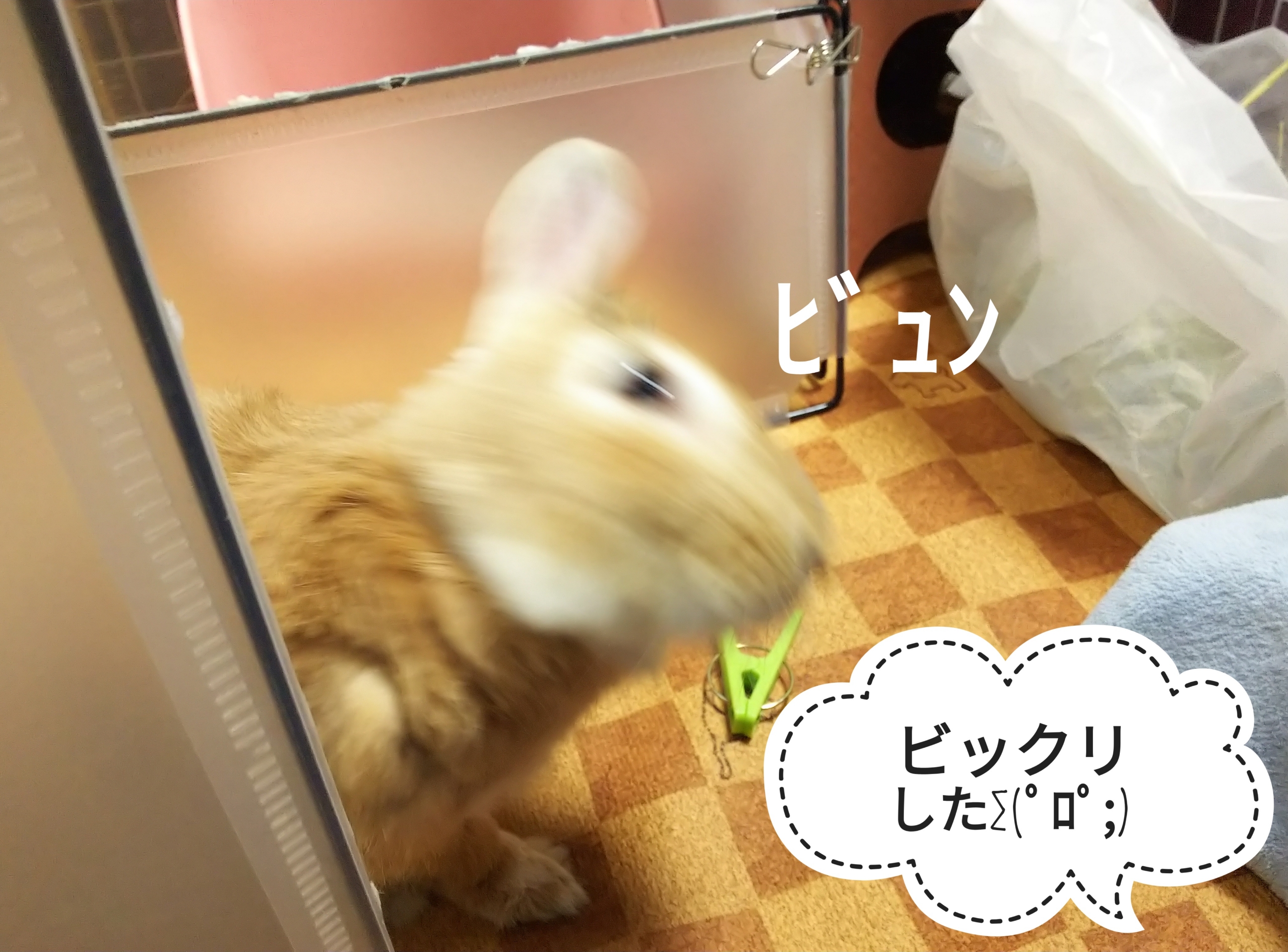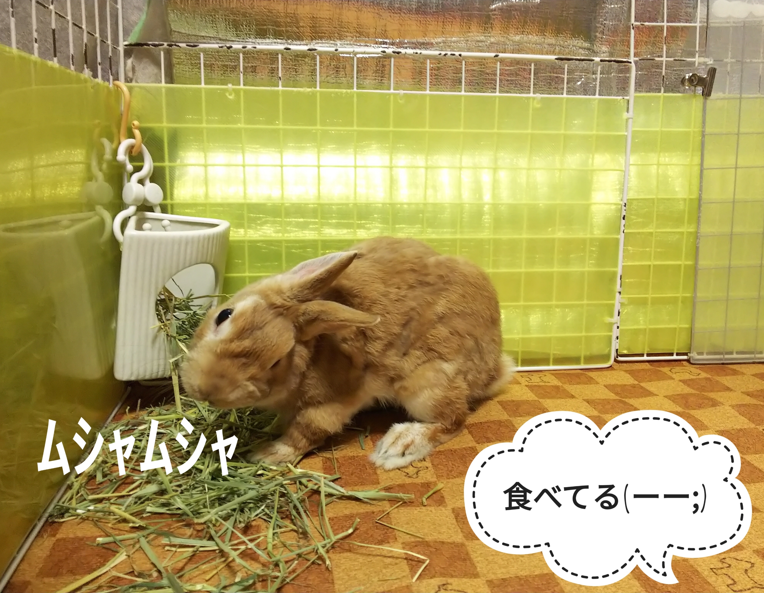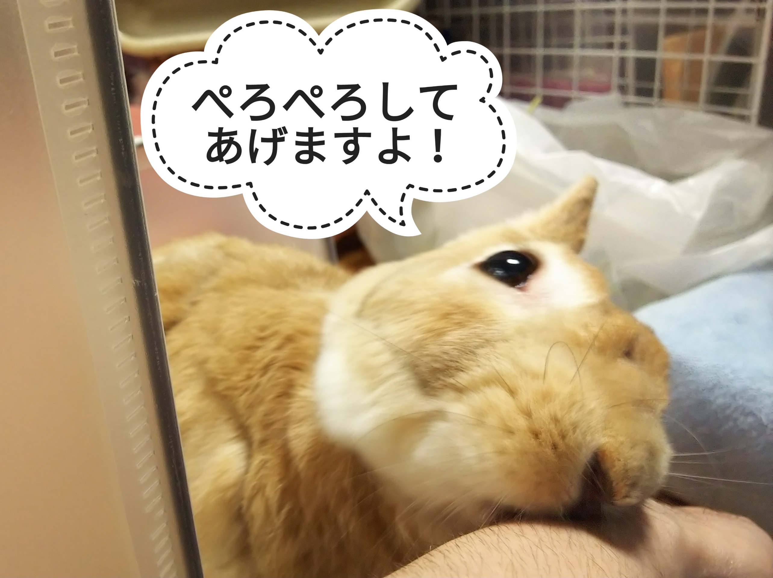 ぷうちゃんは牧草を食べていたので、飼い主はケージの掃除をしていたのですが